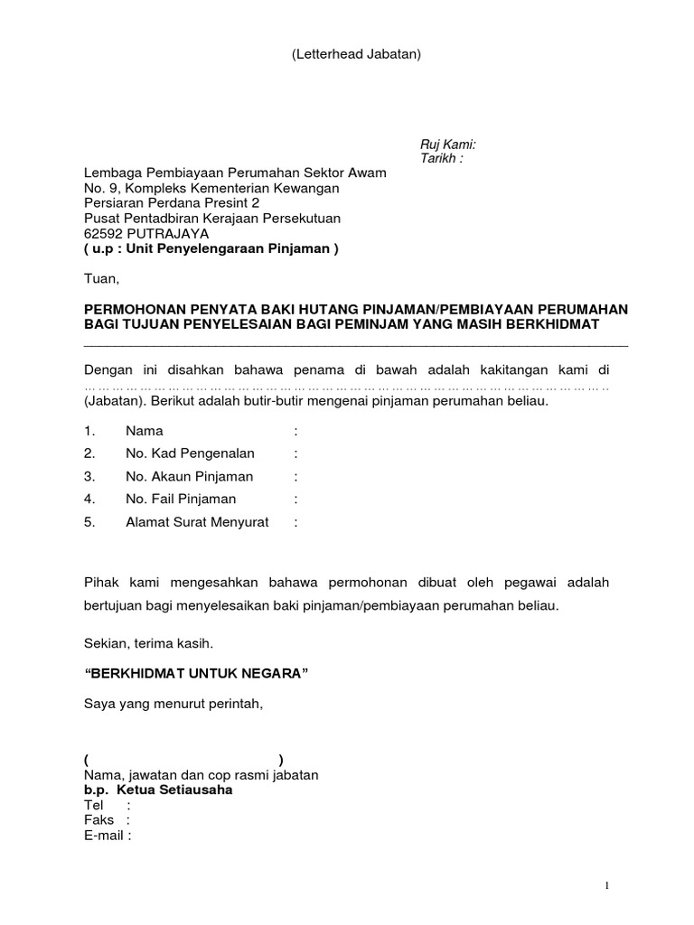 Doc Contoh Surat Pengesahan Utk Menyelesaikan Baki Pinjaman Di Bank Zurinah Yaakub Academia Edu